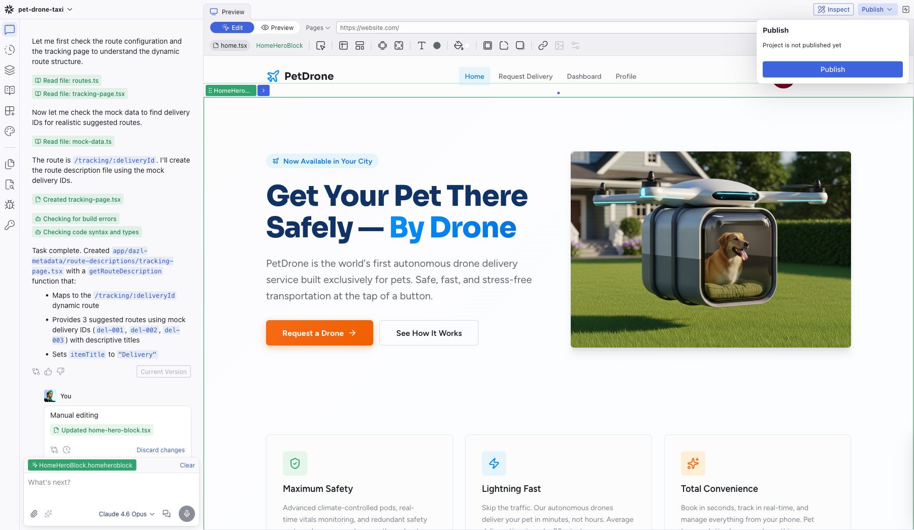 Dev routes are excluded from the published version. Pages you've created as development-only tools (admin panels, data management interfaces) don't appear in the published project. See Pages and Routing for more on dev routes.