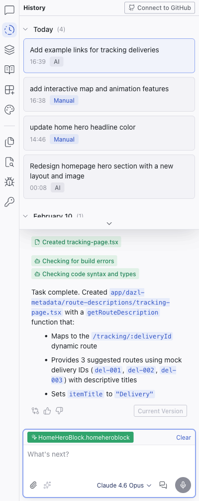 Use it to brainstorm features, plan an approach, or ask the AI about how your project works — why a component behaves a certain way, what a piece of code does, or how things are connected. Toggle it off when you're ready for the AI to start making changes again.