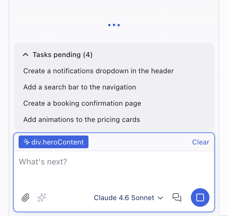You can send additional prompts while the AI is still working. Queued prompts appear as a "Tasks pending" list above the prompt box and run in order automatically once the current task finishes.