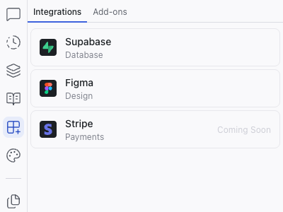 Add-ons are pre-built recipes that help install and configure libraries in your project. They live in the Add-ons tab within the Integrations panel, and handle the initial setup steps (installing packages, creating configuration files, adding boilerplate) so you can start using a library without deep technical knowledge.