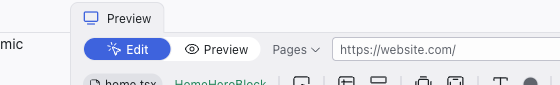 - Breadcrumb label showing the component name (e.g., "HomeHero...")