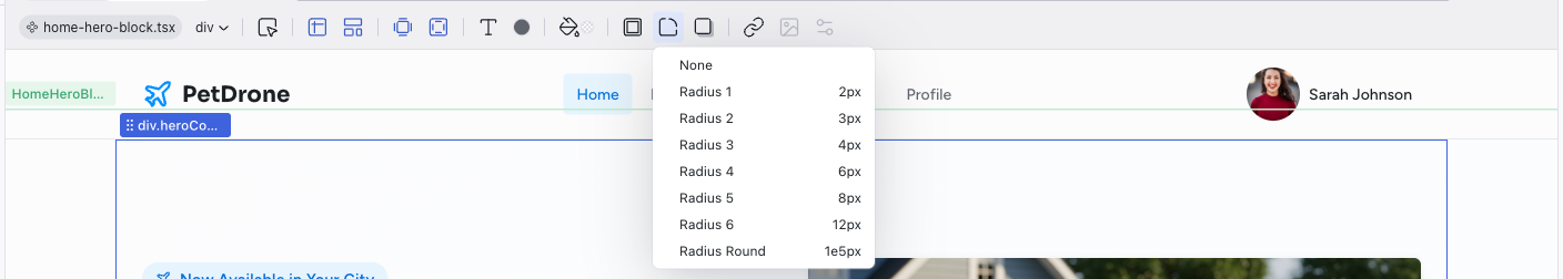 Set the border-radius using your theme's radius scale. This keeps corner rounding consistent across your project.